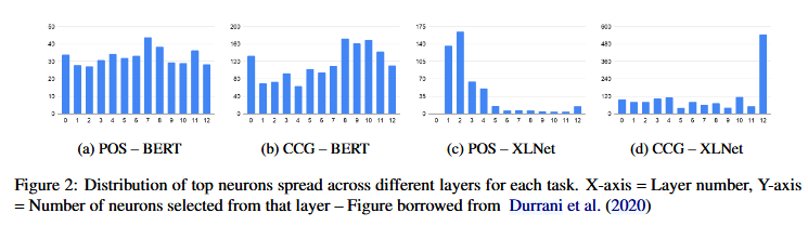 BERT(自动编码器)中的语言知识在整个网络中高度分布,而 XLNet(自回归)则由来自几层的神经元主要负责一个概念
